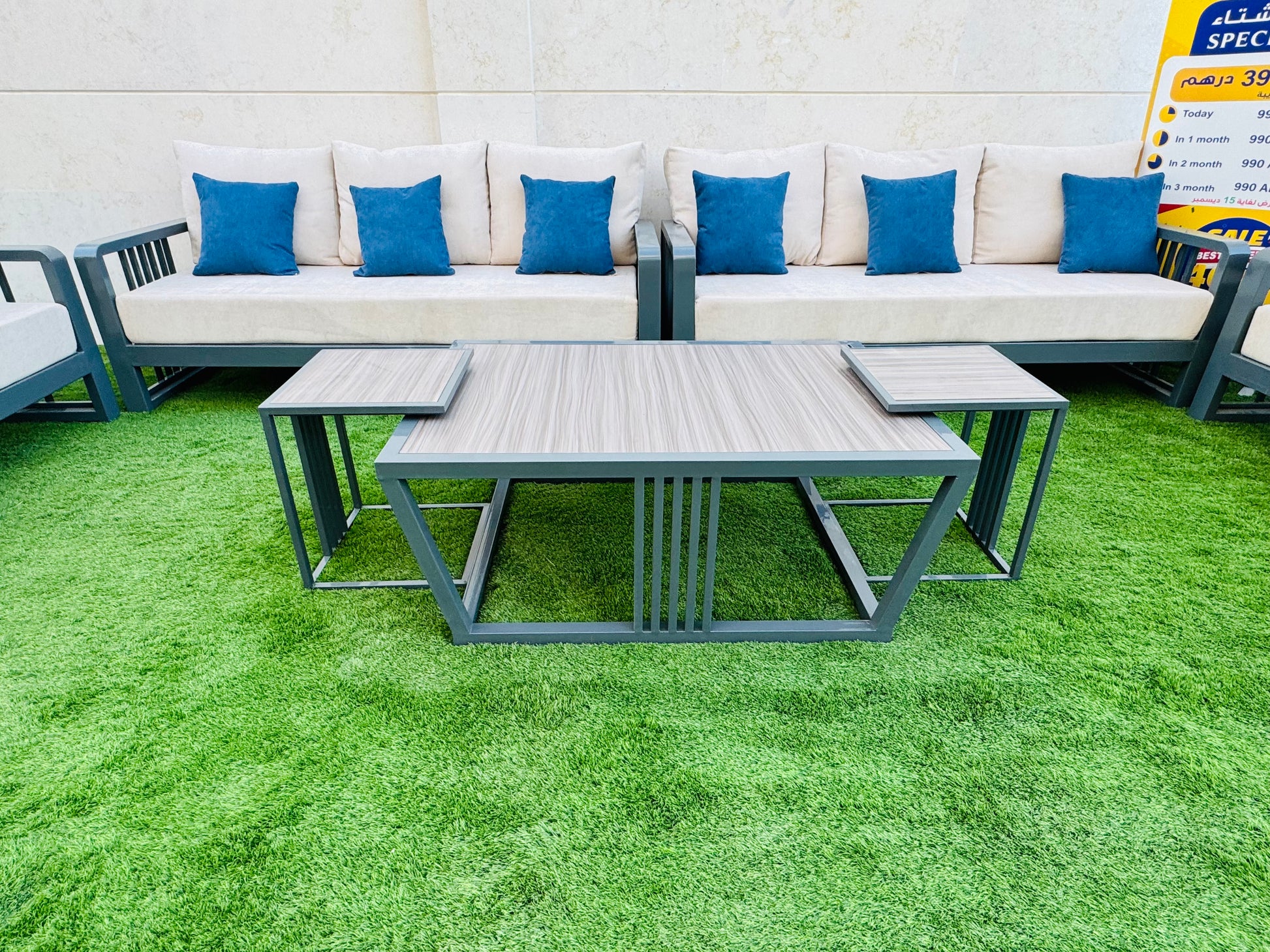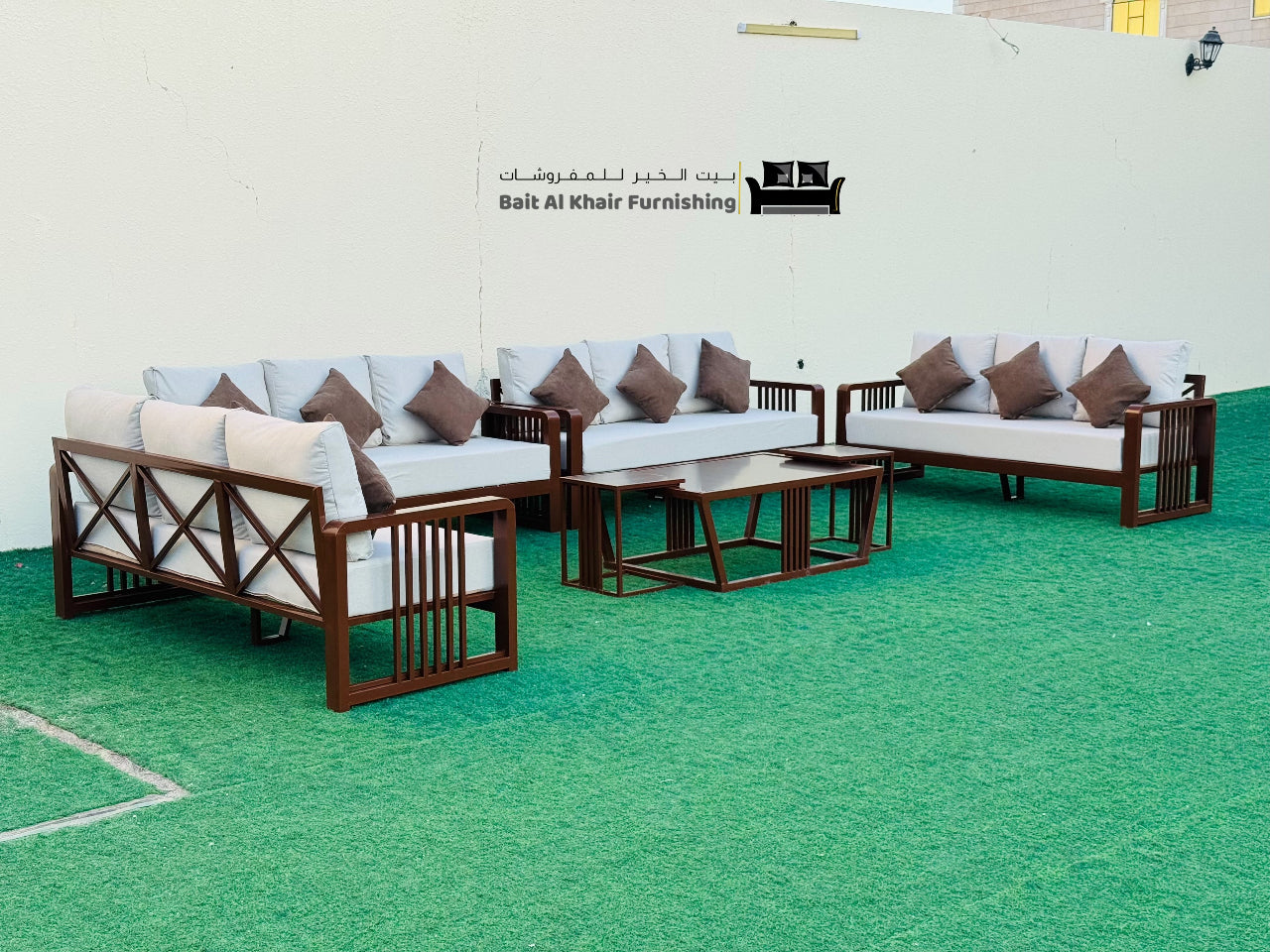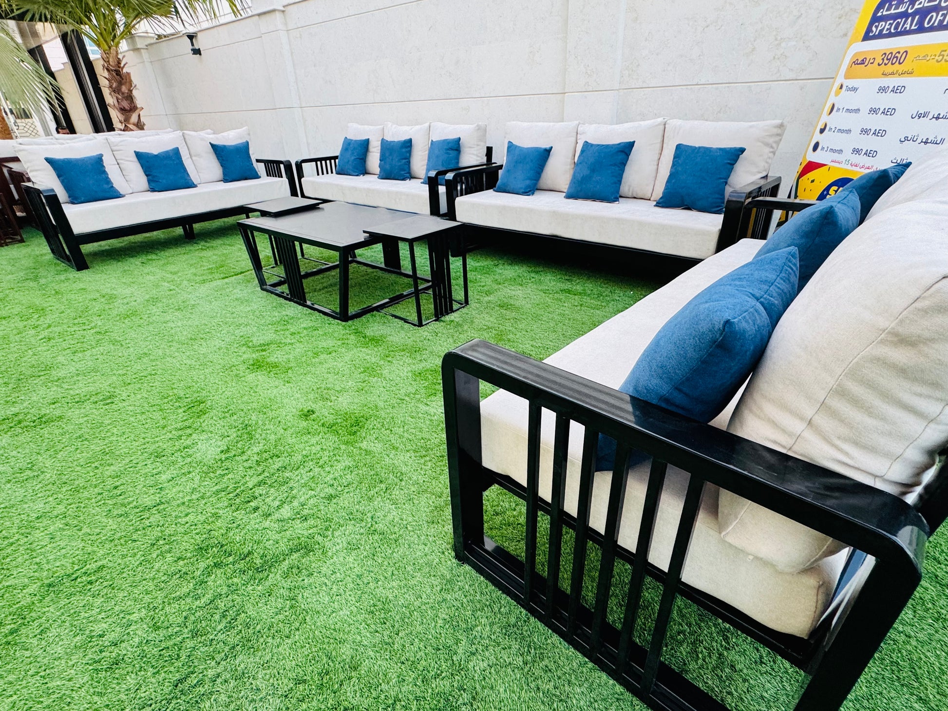 • تفاصيل الصبغة:تم طلاء مجموعة الجلوس هذه بلون حراري (بودر کوت)، مقاوم لمختلف الظروف الجوية. يضفي هذا اللون مظهراً جميلاً ومميزاً على المجموعة، ويحميها من الأمطار، وأشعة الشمس، ومن الصدأ، مما يتيح لك الاستمتاع بها لفترة طويلة وبجودة عالية.