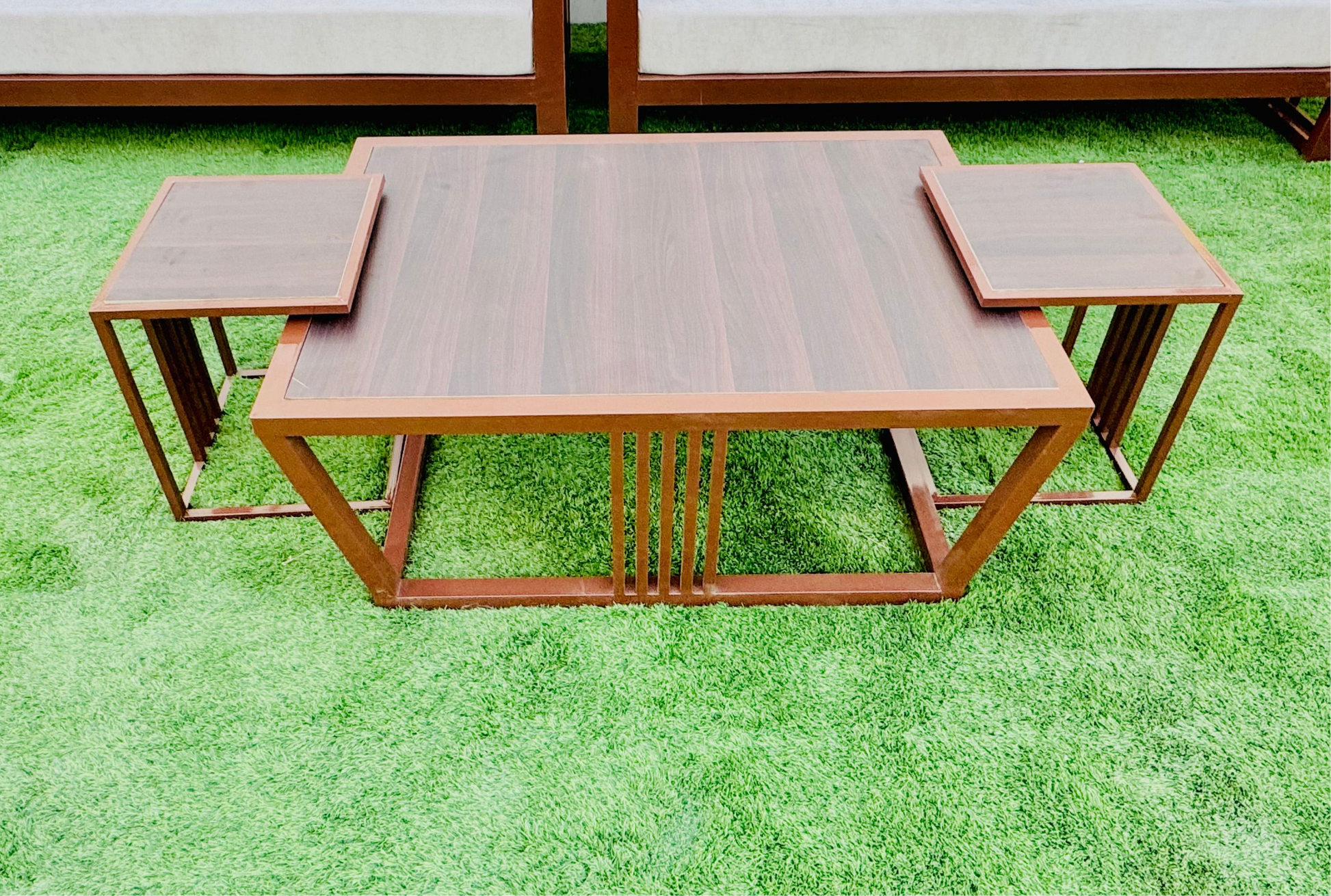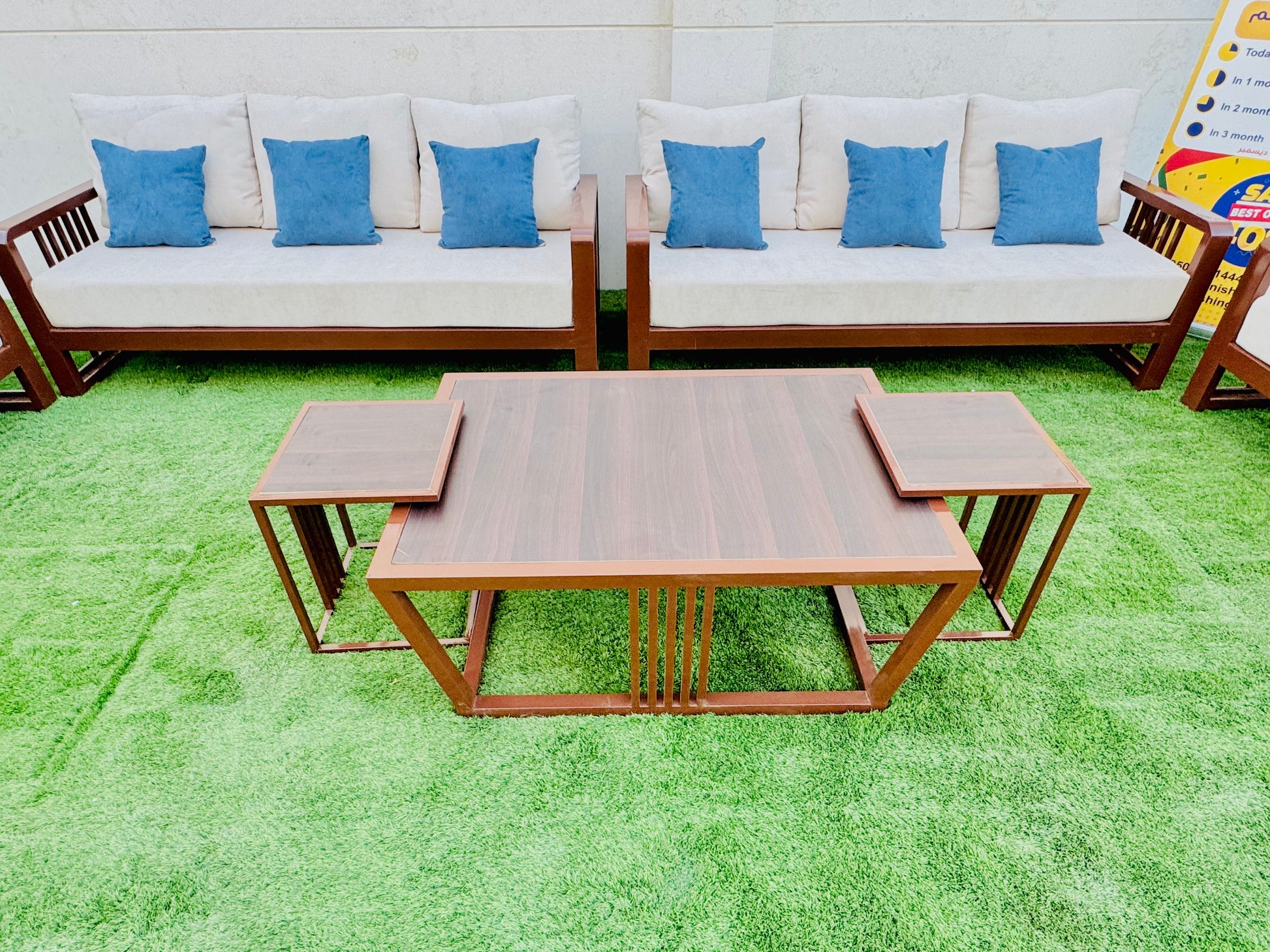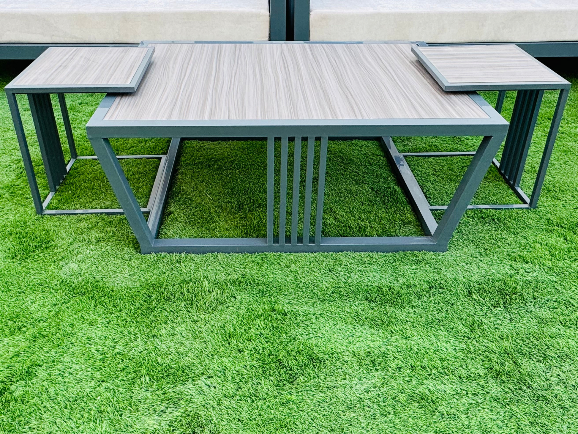 • تفاصيل الصبغة:تم طلاء مجموعة الجلوس هذه بلون حراري (بودر کوت)، مقاوم لمختلف الظروف الجوية. يضفي هذا اللون مظهراً جميلاً ومميزاً على المجموعة، ويحميها من الأمطار، وأشعة الشمس، ومن الصدأ، مما يتيح لك الاستمتاع بها لفترة طويلة وبجودة عالية.