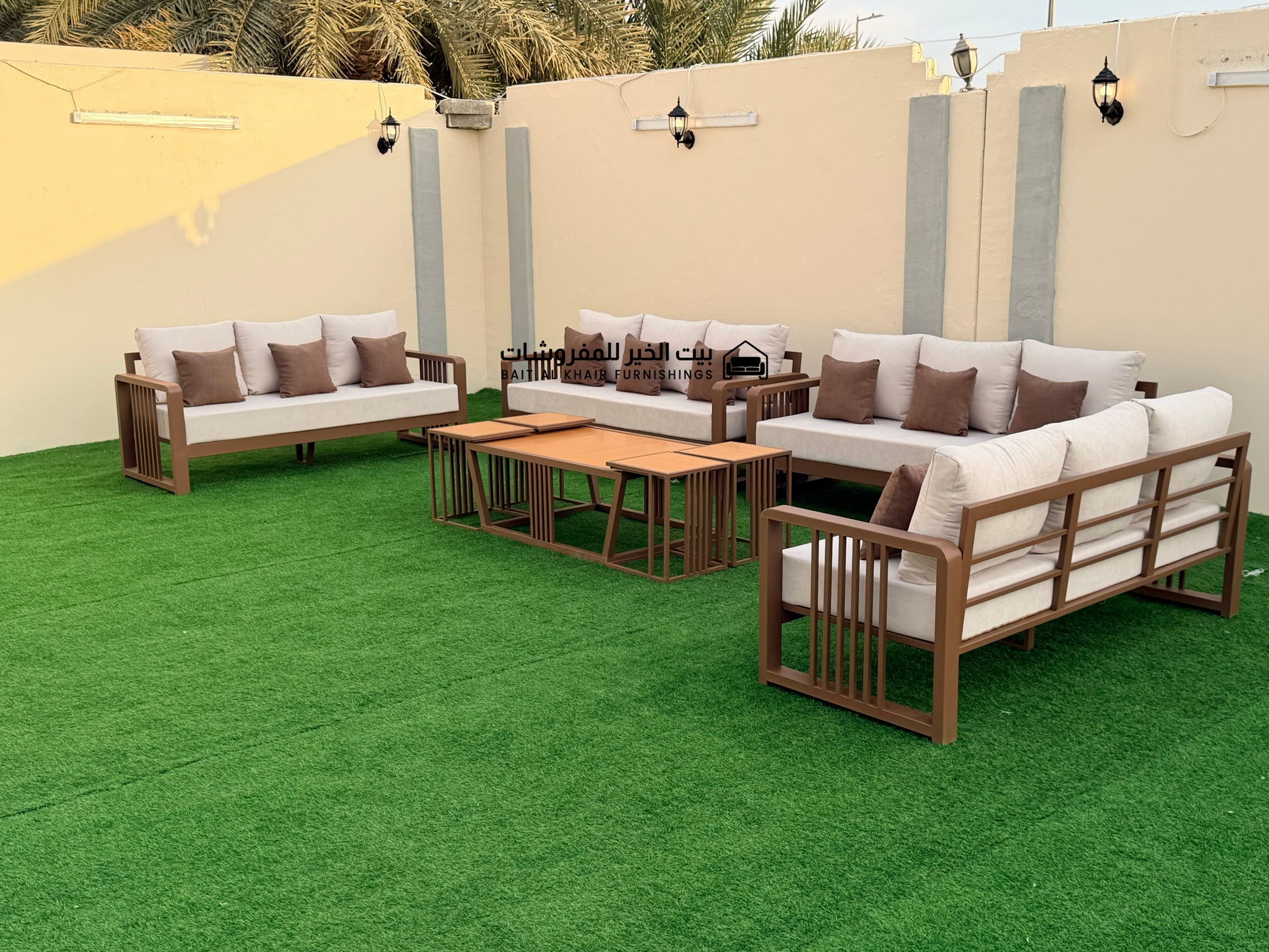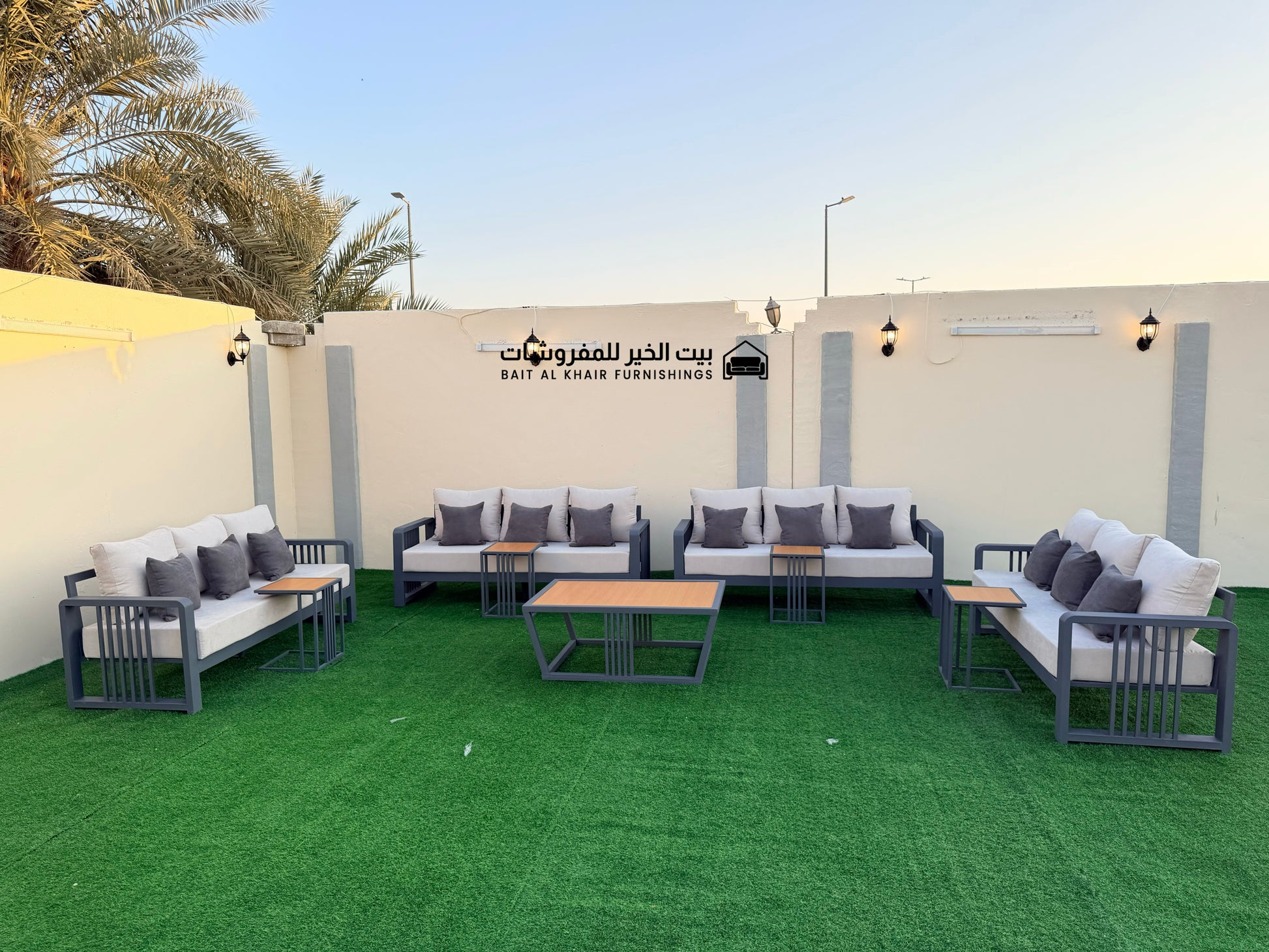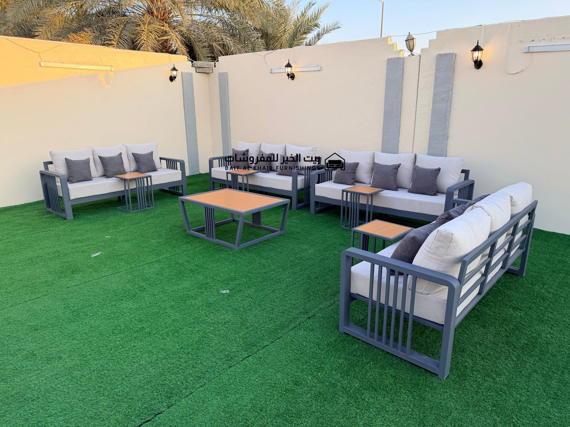 جلسة خارجية حديد حراري رملي 12 أشخاص مع 5 طاولات