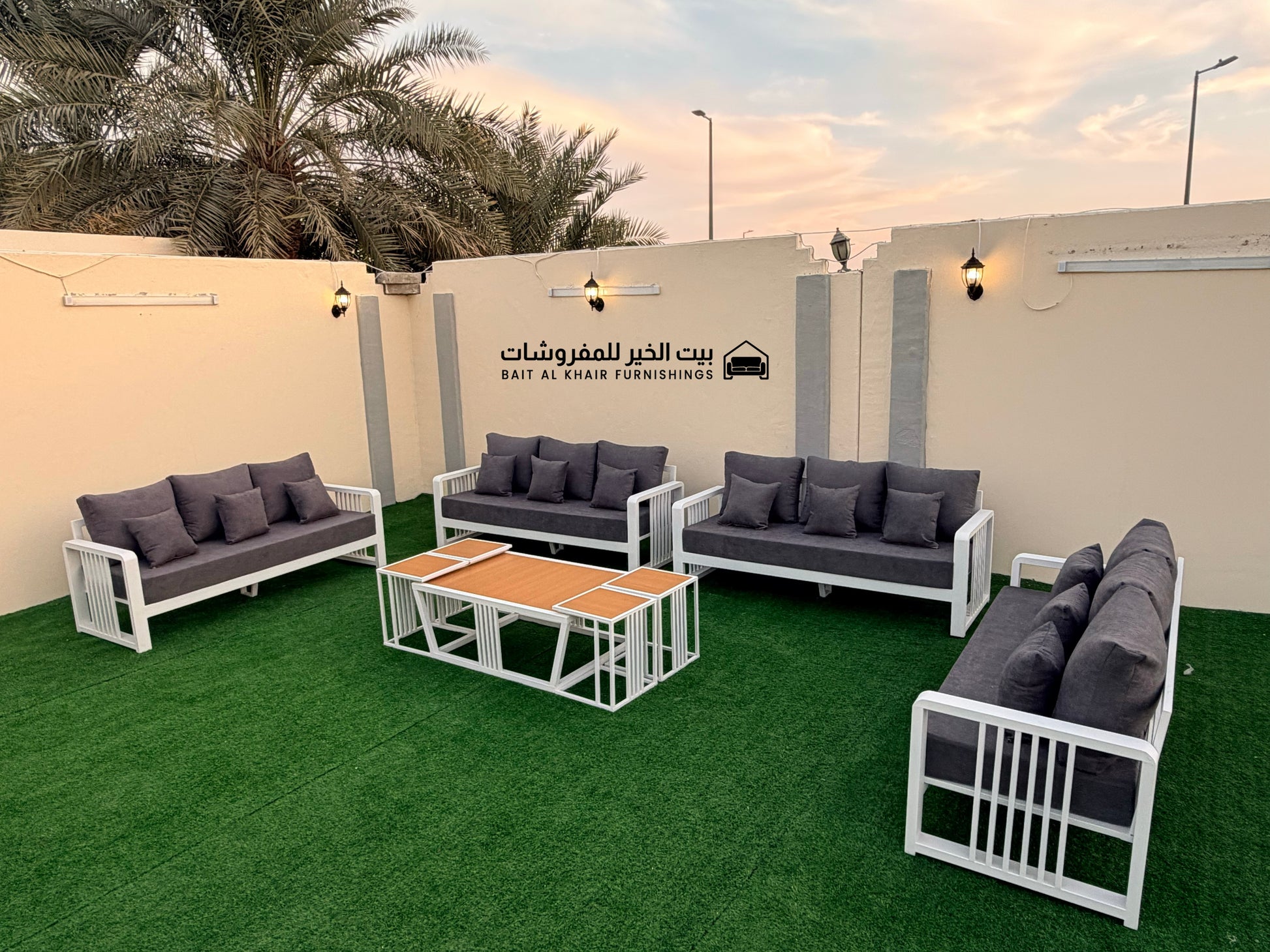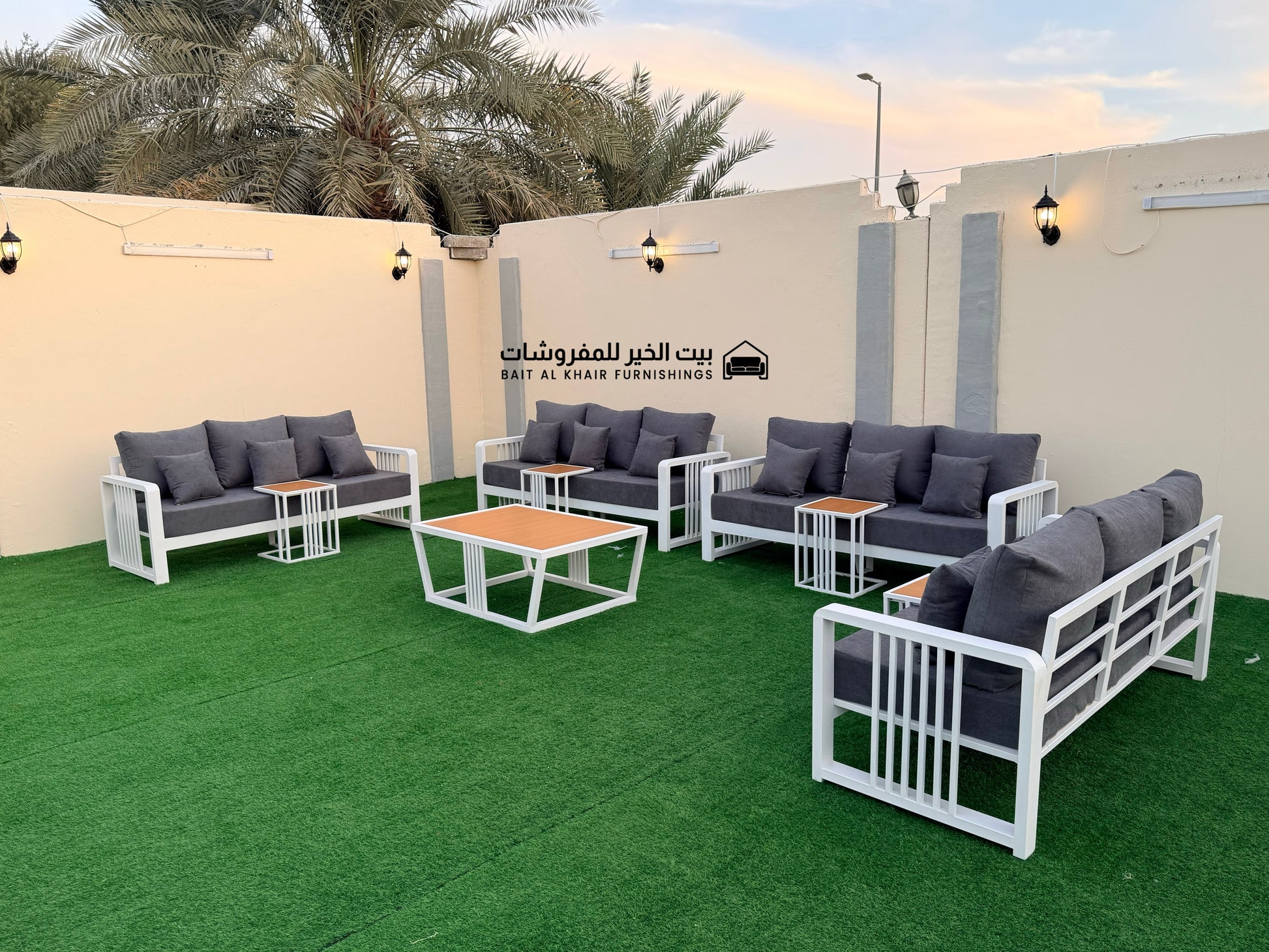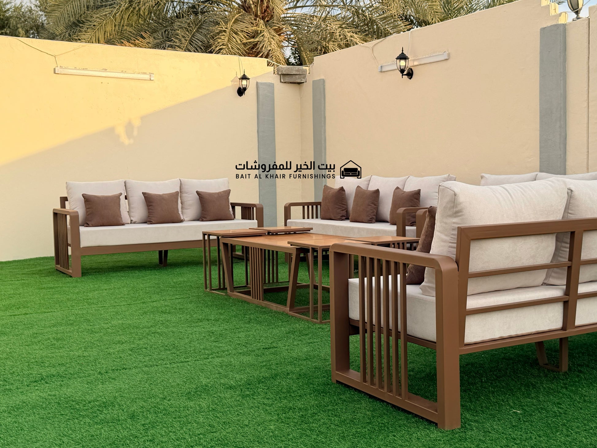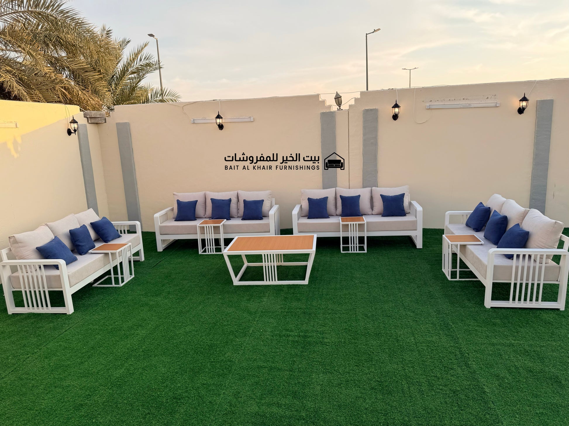 جلسة خارجية حديد حراري رملي 12 أشخاص مع 5 طاولات