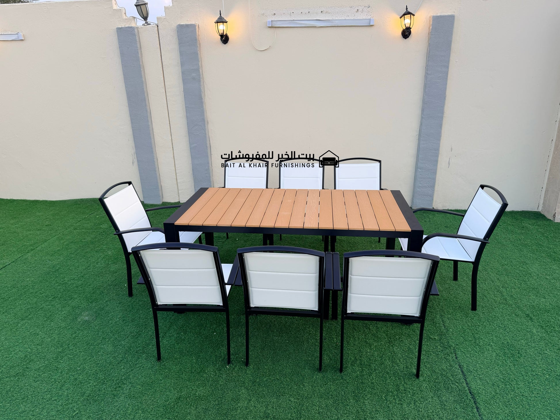 طاولة الطعام الخارجية من ألمنيوم اسود ل8 أشخاص